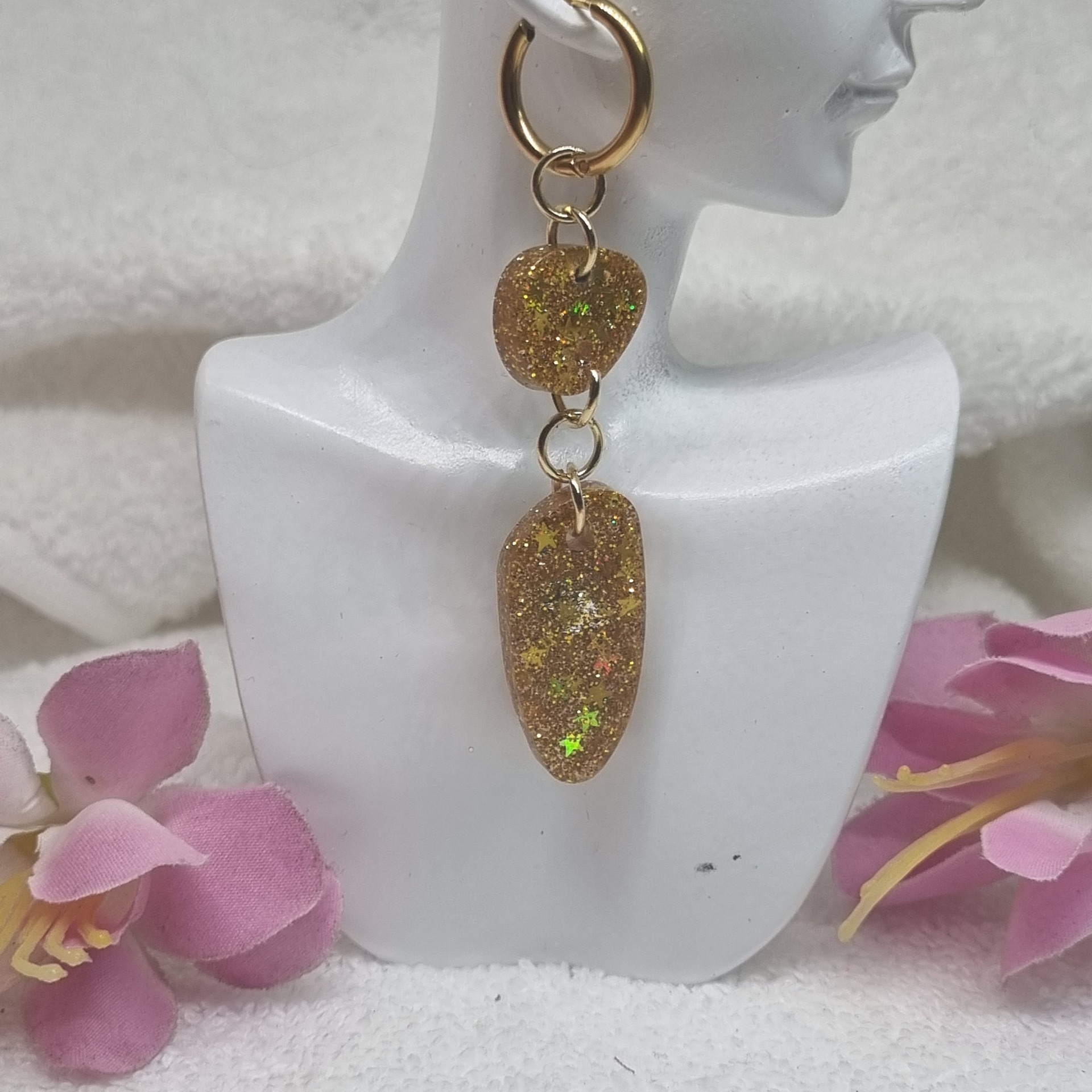 Ylempi osa on kuin kirkas auringonsäde, suora ja elävä. Alempi osa hehkuu lämpimänä, kuin hunajaan kastettu valo. Kultainen rengas niiden välissä ei ole pelkkä yksityiskohta – se on aurinkokehä, joka sitoo kaiken yhteen ja antaa liikkeelle sulavan, arvokkaan rytmin.