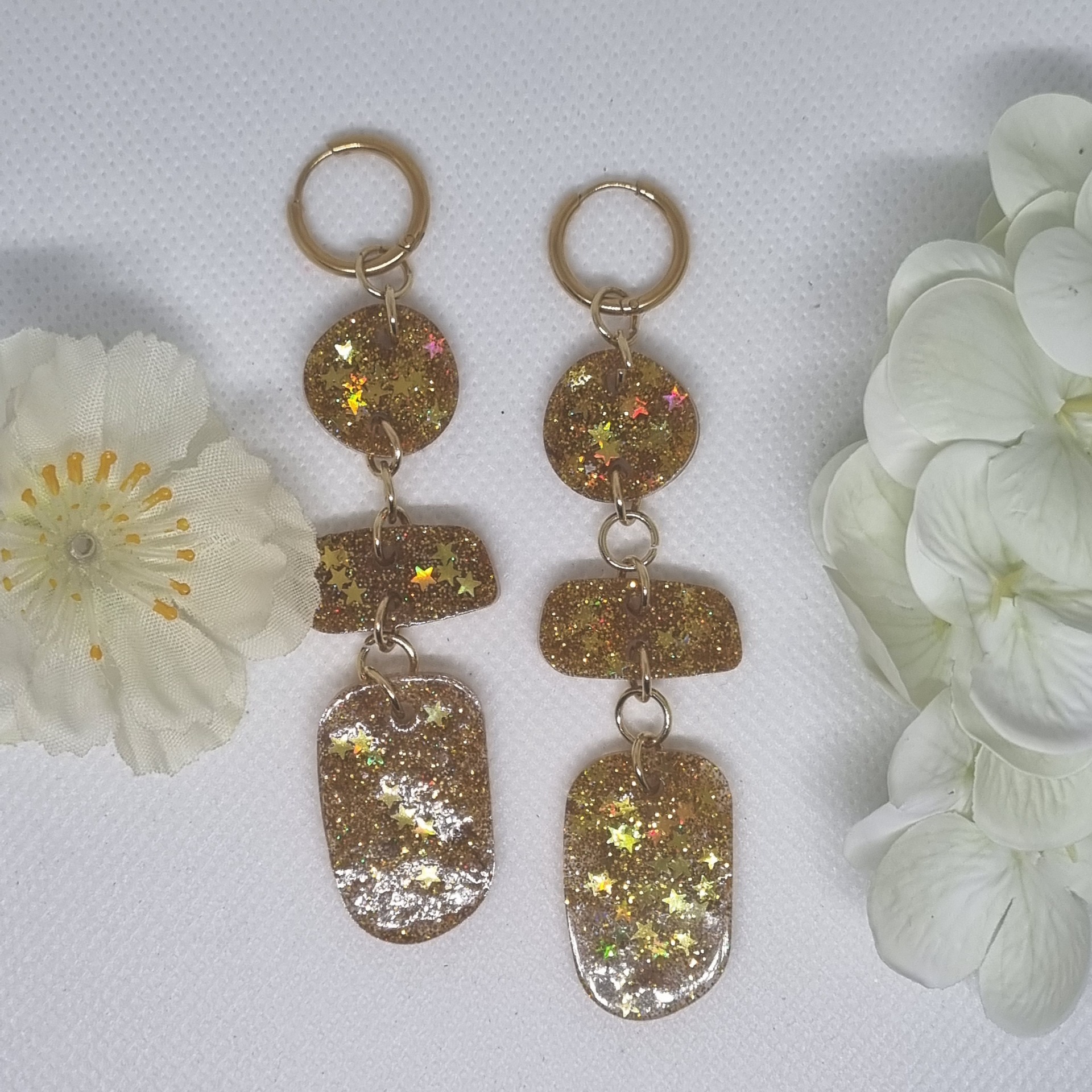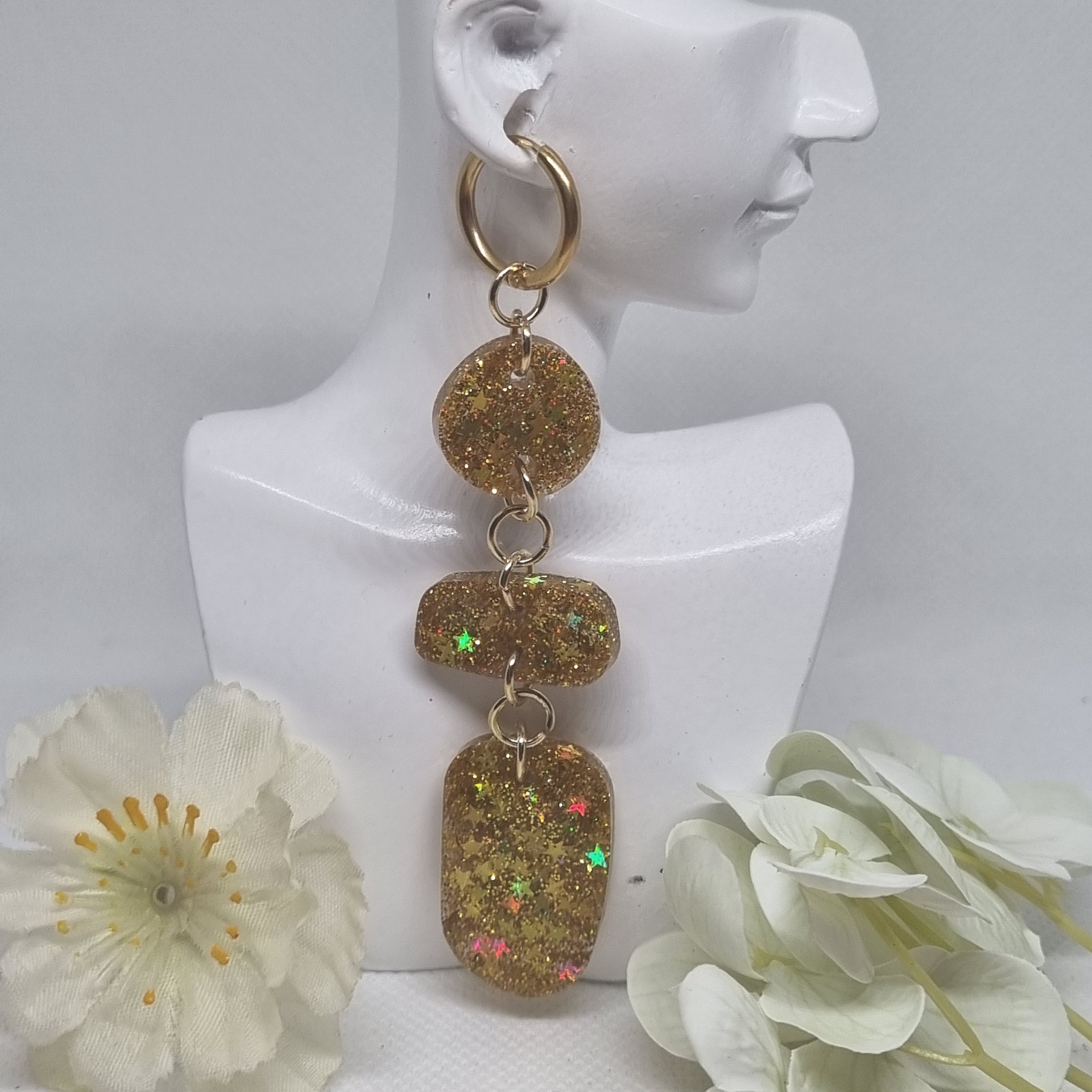Kun nämä korvakorut liikkuvat, ne eivät vain heijasta valoa – ne kertovat tarinaa kulkijasta, joka uskaltaa loistaa silloinkin, kun maailma hämärtyy.