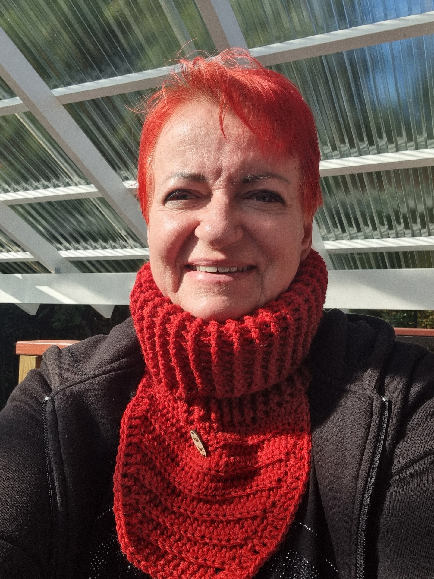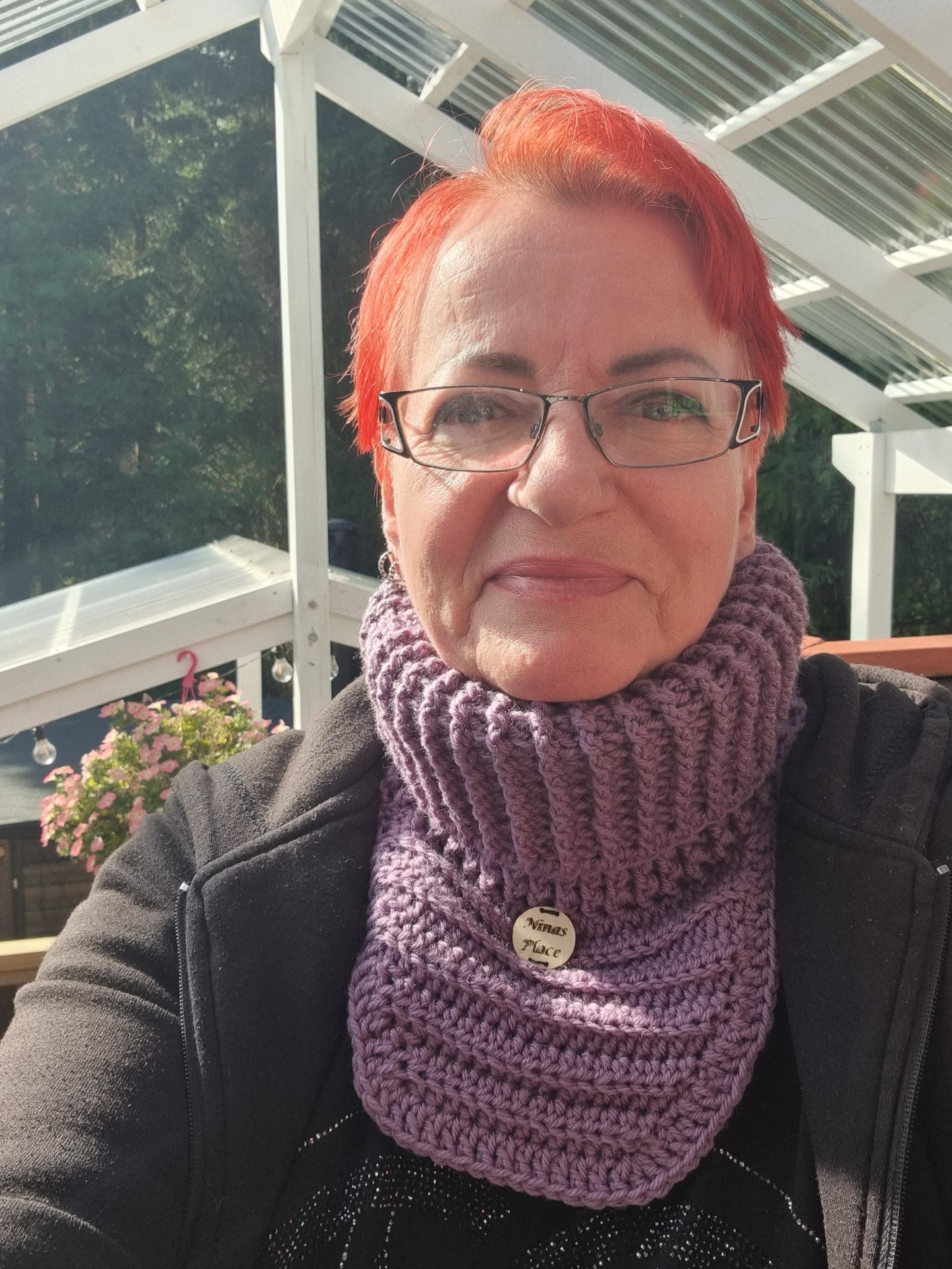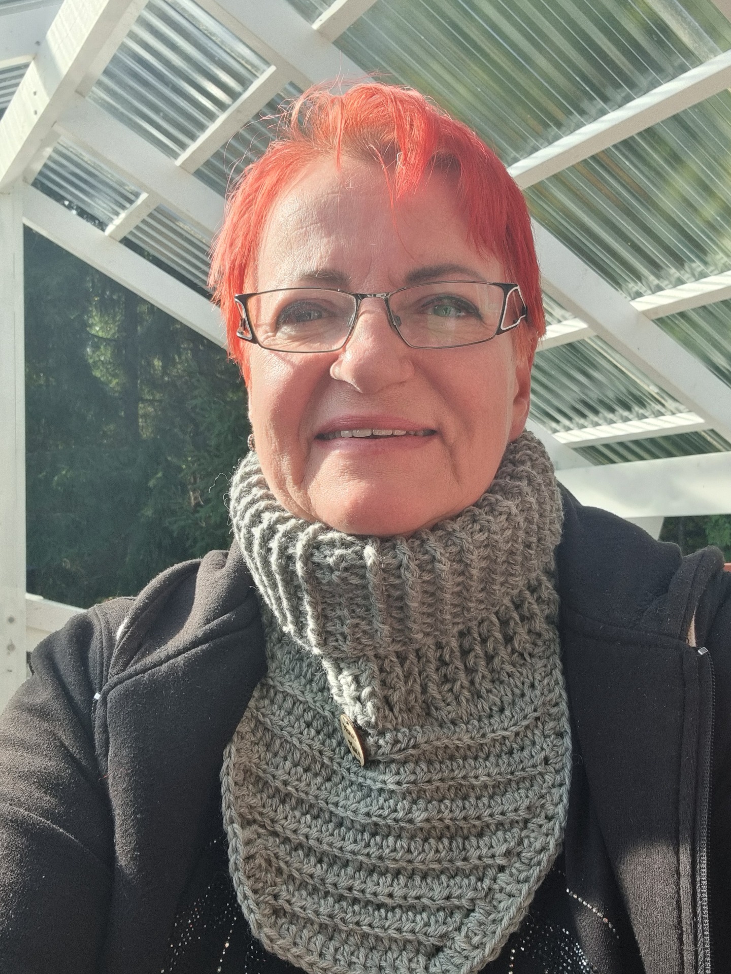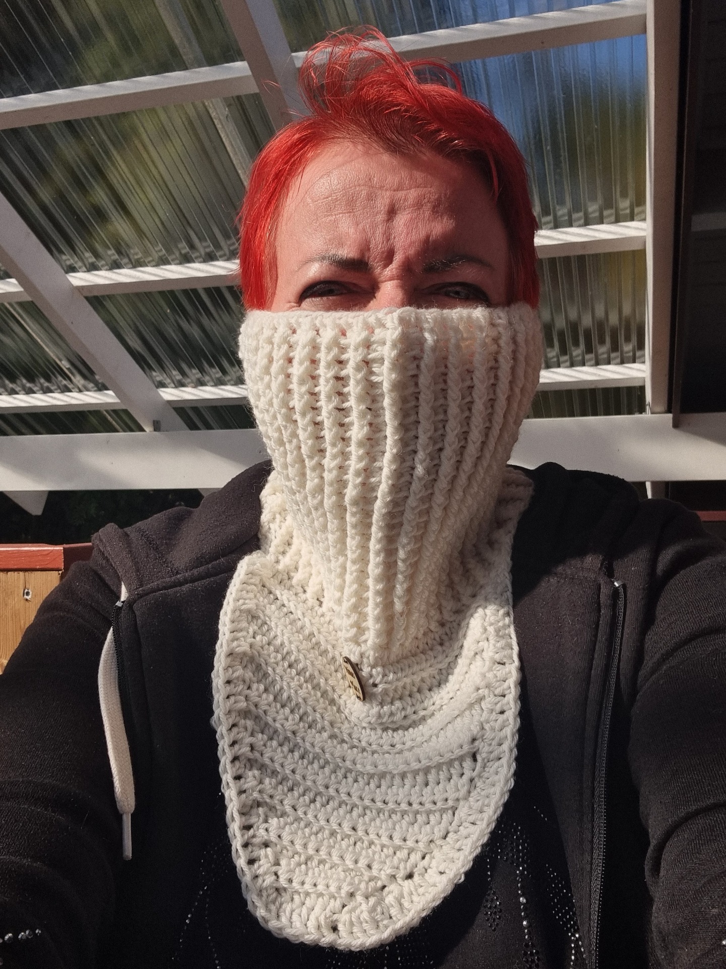 Virkattu kauluri, joka laskeutuu kauniisti ja lämmittää rinnan sekä niskan. Metsänpeitto on käytännöllinen ja pehmeä valinta, joka sopii takin alle ulkoiluun.